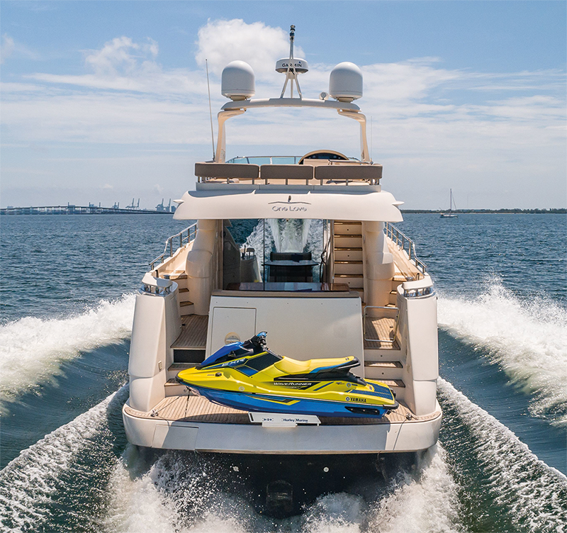 Nyt Suomenkin markkinoilla on merkittävästi helpompi menetelmä veneisiin, joissa on uimataso: ajetaan veneen tai jetin keula kääntyvää telinettä vasten ja vinssataan ylös. Teline käännetään uimatasolle ja vene kiinnitetään. Valmis.