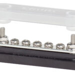 Kompakti ja monipuolinen 100A virtakisko, jossa on suojaava läpinäkyvä kansi.