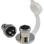 3-napainen kansikosketin messinkiä/kromattu. Vesitiivis, Ø 37 mm, 2-3 A.