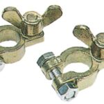 Pronssinen akkukenkä, pultti ruostumatonta terästä. Plus-pultti 10 mm, miinus-pultti 8 mm, hinta/pari.