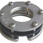 Ruostumaton asennuslaippa S3 anturille, Ø 80 mm. Kuudella ruuvireiällä, joiden jako-Ø 70 mm. Sisältää tiivisteet, ruuvit ja tankin sisäpuolisen tukilaipan.
