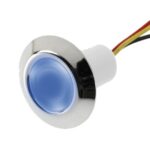 Sininen LED 12 /24 V askelmavalaisin kiillotetussa alumiinikotelossa, IP 65 Ulkohalkaisija 30 mm, asennusreikä 16 mm, asennussyvyys 24,5 mm.