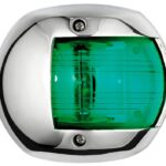 Vihreä kulkuvalo 112,5°. Ruostumattomat sivuvalot, peilikiillotettu, veneille alle 12 m. Sisältää polttimon 12 V 10 W. Merenkulkulaitoksen hyväksyntä. Suurin leveys 80 mm, suurin korkeus 70 mm.