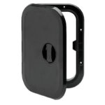 180° aukeava musta luukku. Irrotettava sarana, 2in1 luukunsuoja.