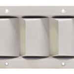 Ilmanottoventtiili valkoista ABS -muovia, viisi ilmanottoaukkoa. Koko 120 x 336 mm.