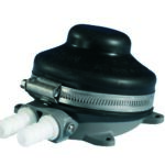 Itseimevä, pieni ja kätevä, lattiaan asennettava jalkapumppu. Materiaalit: nailon, synteettinen kumi ja ruostumaton teräs.