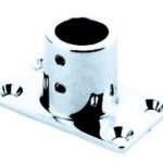 Kaidehela ruostumatonta terästä, 90° suorakaidelaatta 75 x 45 mm, ø 1” putkelle, reiät neljälle 1/4” ruuville.