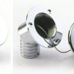 Kansiruuvike kromattua messinkiä, 45° kulmalla, dieselille, halkaisija 38 mm.