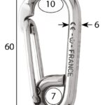 316L luokan ruostumaton teräskarbiinikoukku kiinnityssovelluksiin, symmetrinen muotoilu, varustettu silmukalla punoksen tai jatkeen kiinnittämiseen. Luokan 316L ruostumaton teräs.