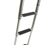 Kasettitikas uima- ja keulatason alle. 4 askelmaa. RST AISI316. Litteät muovipäällysteiset askelmat. Pit. avattuna 1160 mm. Kasetin koko tikkaat sisällä pit. 355 mm, lev. 275 mm.