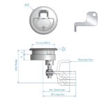 Luukunnostin 2,5″ AISI316, kiristävä. Lukittava – pitkä kieli. Luukun paksuus 2 – 12 mm. Kannen paksuus 34 – 48 mm.