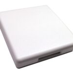 Kokoontaitettava lasiteline valkoista muovia, kiinnitetään ruuveilla alustaan. Koko 90 x 90 mm.