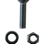 Kupukantainen koneruuvi, haponkestävä. Sisältää mutterin ja aluslevyn. DIN 7985.