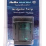 Hella Marine kulkuvalo, vihreä, musta runko. Veneisiin alle 12m. 12V polttimo, 10W.