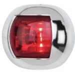 LED-merenkulkuvalo 12 m veneille. Käyttöjännite 6 – 32 V. Vesitiivis IP56. Kromattu kuori. CE-hyväksytty (RINA). Lev. 70 mm, kork. 63 mm, syv. 38 mm.