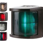 Kulkuvalo mustalla makrolon-kuorella. Alukset alle 20 metriä, SOLAS tyyppihyväksyntä NK-todistuksella. Lampunkanta BAY 15 d.