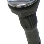 Läpivienti harmaata nailonia ja ulkolaippa ruostumatonta terästä.