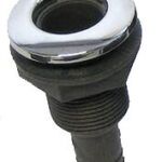 Läpivienti harmaata nailonia ja ulkolaippa ruostumatonta terästä.