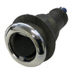 Läpivienti harmaata nailonia, ulkolaippa ruostumatonta terästä, letkun halkaisija 38 mm, takaiskuventtiilillä.