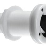 Läpivienti takaiskuventtiilillä, valkoinen nailon ja musta vinyyliläppä, halkaisija 38 mm letkulle.