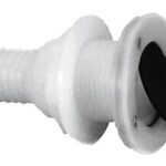 Läpivienti takaiskuventtiilillä, valkoinen nailon ja musta vinyyliläppä. Ulkolaippa ruostumatonta terästä, halkaisija 38 mm letkulle.