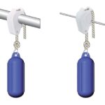Valkoiset lepuuttajan kiinnikkeet 22 mm ja 25 mm putkelle tai 6 – 8 mm kaidevaijerille. Köyden paksuus 6 – 8 mm. Paketissa 2 kpl.