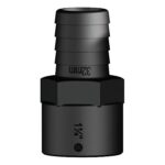 Trudesign-letkuliitin on suora, sisäkierteellä valmistettu liitin mustasta muovimateriaalista.