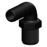Letkuliitin 90° kulmalla, mustaa komposiittia, 3/4″ kierteellä, 19 mm letkulle.