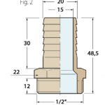 Messinkinen letkuliitin, tukeva malli, sorvattu R-putkikierre 1/2”.