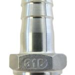 Ruostumattomasta AISI316 teräksestä valmistettu letkuruuvike 1/4″ uroskierteellä, 10 mm letkulle.