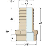 Messinkinen letkuliitin, tukeva malli, sorvattu 3/8″:n R-putkikierre.