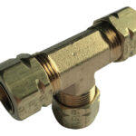 Liitin 3/8” O.D-putkelle. T-kulma.