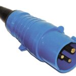 Maasähkökaapelin jatkoliitin. CEE-uros.