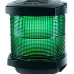 Vihreä merkkivalo 360°, musta makrolonkuori. Alukset alle 20 metriä, SOLAS tyyppihyväksyntä NK-todistuksella. Lampunkanta BAY 15 d.