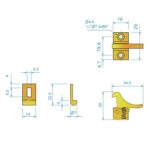 Kiillotettu messinki, pohjalaatta 33 x 16 mm, korkeus 32 mm.