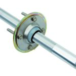 Moottorikaivokiinnike S40 alumiiniputkella. Tukilaippa on korroosiota kestävää terästä ja ulkolaipat ruostumatonta terästä. Kierteillä varustettu ohjausputki on nivelletty nailonpallolla laippojen väliin.