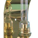 Korkealuokkainen öljylamppu kiillotettua ja lakattua messinkiä. Seinäkiinnikkeellä. Pyöreä poltin 14″, lampun lasi 14″ x 210 mm. Paloaika noin 40 tuntia. Valaisin soveltuu myös pöytälampuksi.