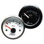 Öljypainemittari 10 kg. Asennus Ø 52 mm, asennussyvyys 62 mm, kokonais- Ø 62 mm. Vakiona punainen ja keltainen valaistus. Käyttöjännite 12/24V.