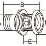 A= 76 mm, B 146 mm, C = 88 mm, D = 116 mm, E = 33 mm.