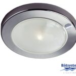 Katkaisimella varustettu pintaan asennettava sisävalo. Matala, kromattu, opaalilasi.