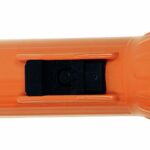 Vesitiivis taskulamppu, jossa myös morsekytkin. Pituus 20,5 cm, halk. 5,7 cm. Toimii 2 kpl R20-paristolla.