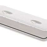 UV-kestävä huoltoluukku kumitiivisteellä.