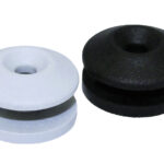 Nailonia. Ulkojalkaisija 25 mm, reijän halkaisija 10 mm. 5 mm paksuiselle lasille.