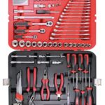 Lenkkiavainsarja ulottuu kuudesta 22 millimetriin, mutta varsinainen runsaudensarvi ovat hylsysarjat. Niitä on kolmeen eri kokoiseen räikkäavaimeen. Tämän lisäksi 30 ruuvipään erillisestä rasiasta löytyy oikea käytännössä jokaiseen kantaan.