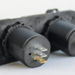 Digitaalinen volttimittari/USB-latauspaneeli. USB-laturi kahdella ulostulolla (A) sekä jännitemittari.