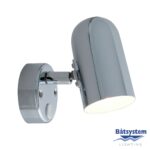 Metallirunkoinen katkaisimella varustettu lukuvalo, runko kromattua messinkiä, 8-30V. Polttimo 94G4v LED.
