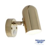 Metallirunkoinen katkaisimella varustettu lukuvalo, runko kiillotettua messinkiä, 8-30V. Polttimo 94G4v LED.