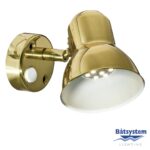 Classic LED valaisin, kiillotettua messinkiä. Valaisimessa on kääntyvä varjostin ja virtakytkin lampun jalassa.