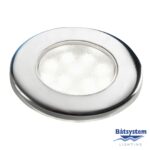 Corona LED-valaisin kromatulla kehyksellä. Kokonaishalkaisija 78 mm, asennusreikä Ø 48 mm. 8-30 V.(94SMDcard)