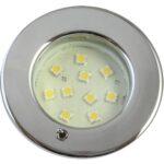 Pinto-kattovalaisin uppoasennukseen, kromattu kehys katkaisimella. Valonlähteenä 94SMD Led kortti. 8 – 30 V.